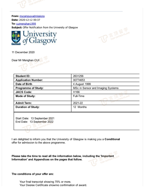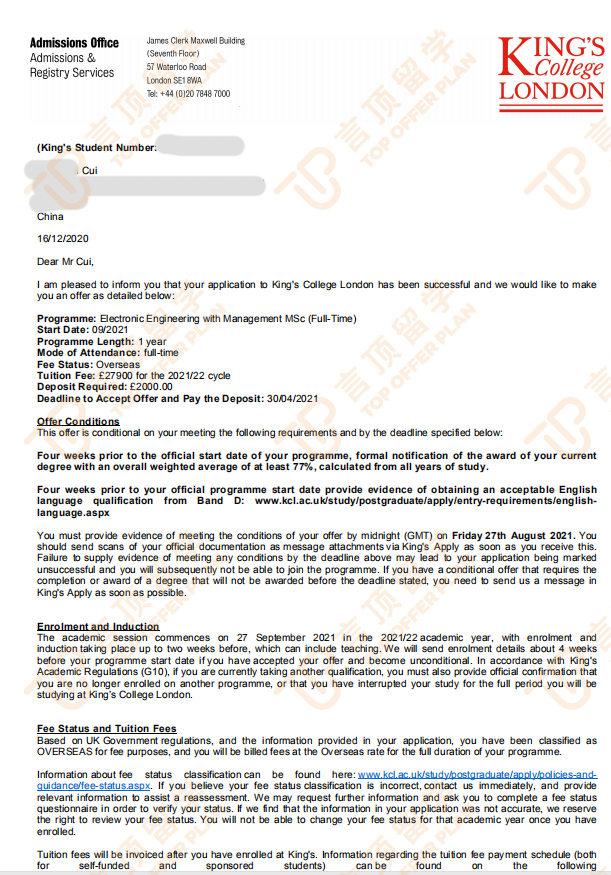还有一部分,就是参与学校组织的活动,老师告诉了我哪些活动是非常有必要参加的,哪些活动是不需要参加的;像寒暑假义工、三下乡、商业模拟比赛等等,这些都是丰富文书材料的关键内容,为我准备个人陈述时减轻了不少压力。虽然目前拿下了KCL和格拉斯哥的offer, 但还有一些条件没达到,我会尽快在言顶老师的帮助下,完成雅思考试,顺利换取正式offer。
