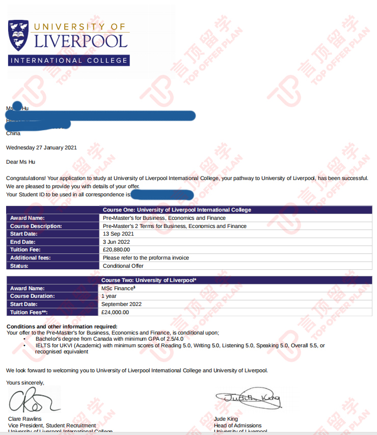 总而言之,申请到利物浦大学,大都是言顶老师的功劳。第二次的合作也是那么的愉快,不少的问题都是迎刃而解。感谢老师们的细心耐心,才能让我有机会完成留学英国的梦想!