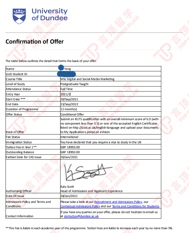能申请到新南威尔士大学、邓迪大学的offer,大部分的功劳都是老师们的。我这个留学小白,只要跟着老师的脚步,完成老师的要求。当然,前提是自己在学习期间努力,拿到不错的成绩,毕竟打铁还需自身硬嘛!老师们帮我迈出了一大步,剩下的就靠自己去努力啦!谢谢老师们的帮助,我还会回来的~哈哈!