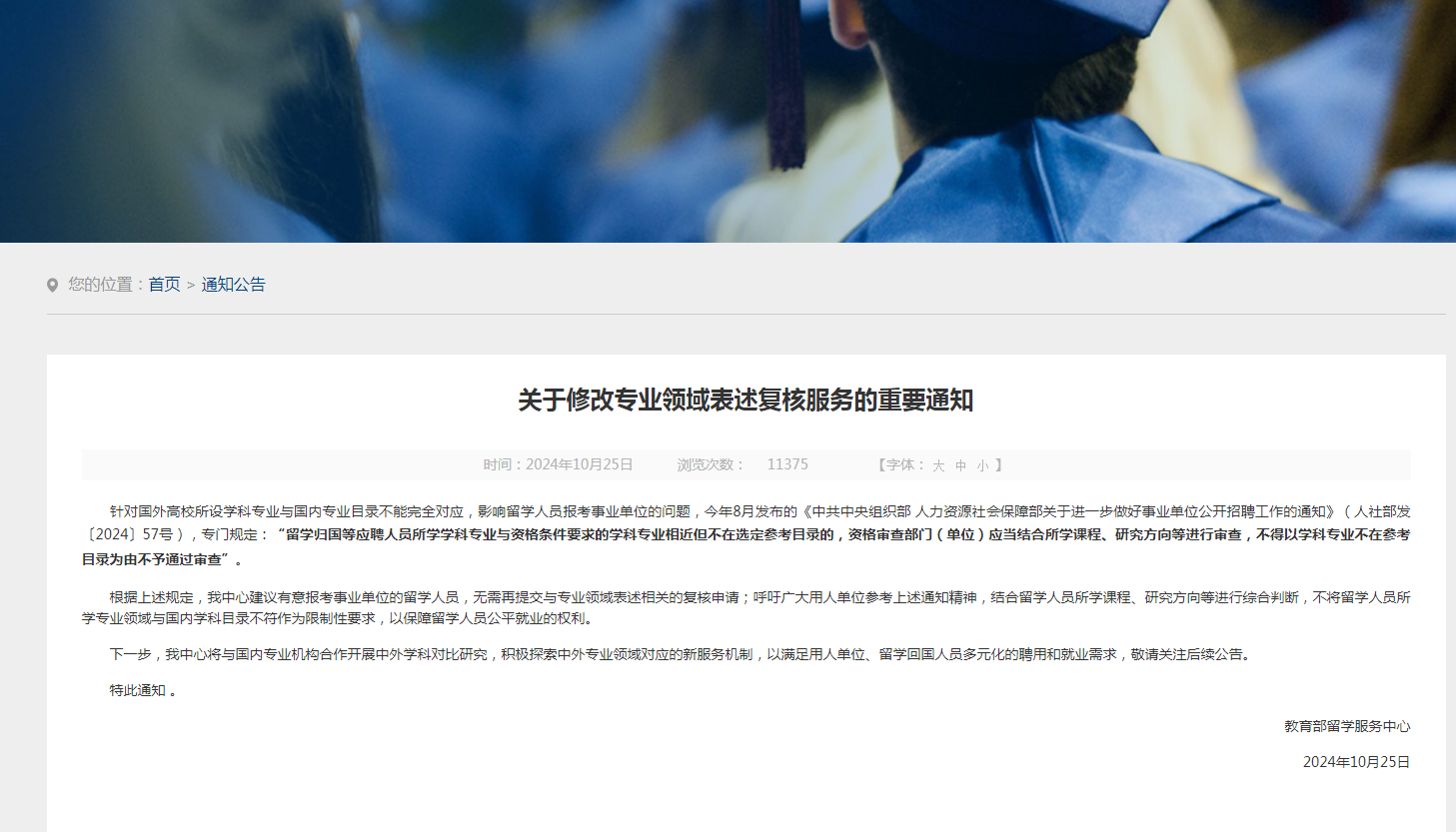 虽然在2024年10月,教育部留学服务中心明确指出“留学人员所学学科专业与资格条件要求的学科专业相近但不在参考目录的”,用人单位应结合课程和研究方向进行审查,不得仅因不在目录就拒绝。这一新规表明目前国家有在努力解决因为“专业目录不符”造成的就业障碍。