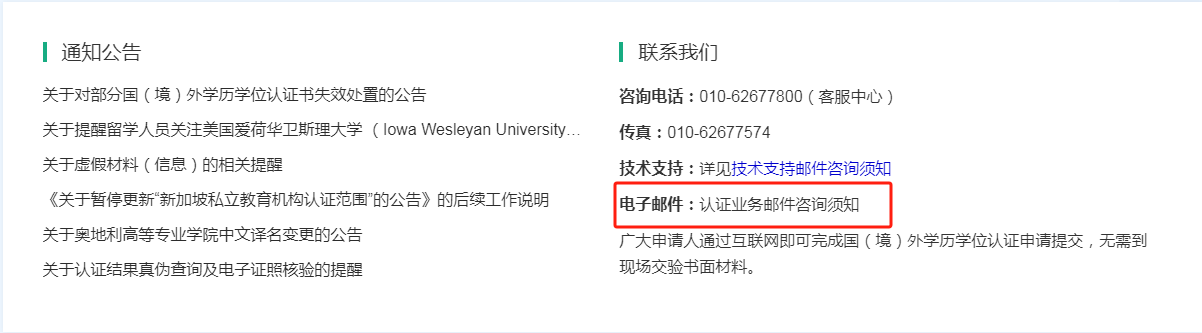 ●首页拉到最底部,点击“认证业务邮件咨询须知”