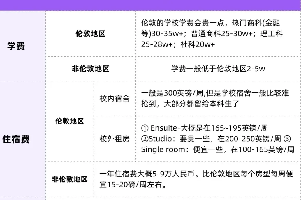 去英国留学的学生中,大部分是攻读研究生学位,其最大优势在于学制短——硕士课程通常仅需1年就能完成。虽然英国每年的学费和生活费相对较高(热门专业学费平均20万到22万人民币,生活费约10万元),但由于学制比国内专硕少1年,整体总成本反而更具优势。