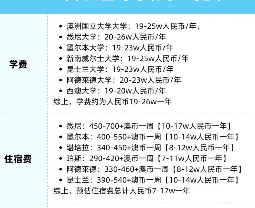 澳大利亚的学校排名靠前、教育质量高,且拥有优质的生活环境,虽然留学费用略高(硕士学费一年10万~25万元,生活费12万~20万人民币),但对于追求生活品质和优质教育的学生来说,仍是不错的选择。