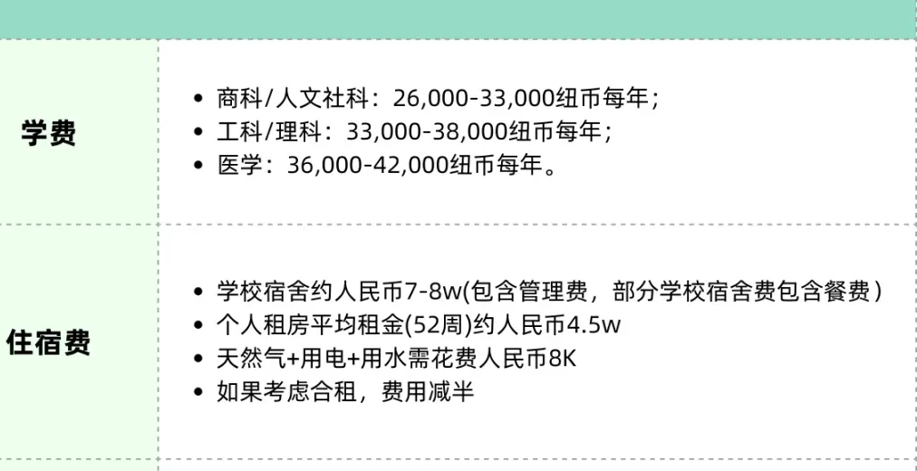 新西兰则以“永久回头签”政策吸引众多留学生,毕业后如符合相应条件,容易拿到PR身份。更重要的是,无论是学费还是汇率,新西兰的留学花费都远低于其他英联邦热门留学国家,硕士学费和生活费每年约15万~20万人民币,性价比突出。