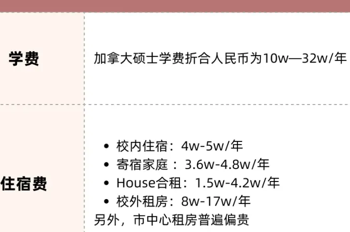 生活费方面,根据所在地区消费水平不同有所差异,中等城市的生活费比大城市低20%~30%,每年约7万到10万元人民币,整体算下来,加拿大读研每年总成本约13万~20万人民币,与国内部分专硕学费相当,甚至更低。