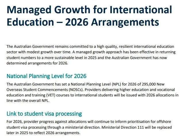 此前,新西兰/澳大利亚两国都陆续发布了利好国际生新政,澳大利亚2026年国际学生国家规划名额确定为29.5万个,较2025年增加2.5万个名额,公立大学可申请2026年额外扩招名额,最终分配方案将于 2025 年 10 月公布。