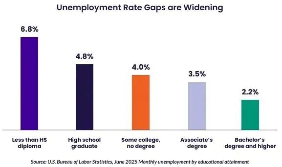 这些数字清晰地揭示:高等教育的核心价值已从“单纯提升收入”升级为“构筑风险防线”。它不仅能为职业发展提供更广阔的空间,更能在技术变革与经济波动中,为个人发展注入稳定的确定性。所谓“大学无用论”,更多是短期焦虑下的情绪