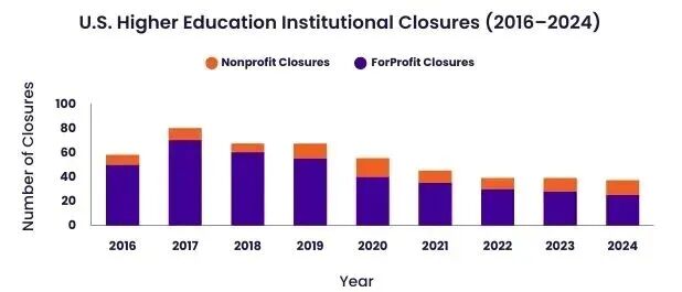 这一变化直接冲击着高校的生存根基——超过400所学校被列入高风险倒闭名单,自2016年以来已有500余所高校关闭或合并,其中高度依赖本土生源的地方性院校首当其冲。