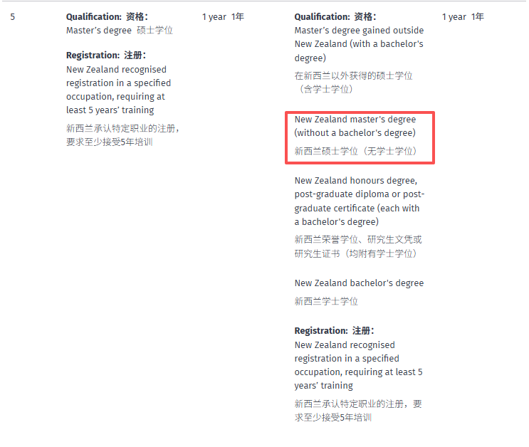 *新西兰本地本科学位(NZQA Level 7)/荣誉本科学位(NZQA Level 8)/研究生文凭(NZQA Level 8):5分(相较于旧政的3分,加分直接提升67%,只需补充1年本地技能工作经验就能凑满6分);